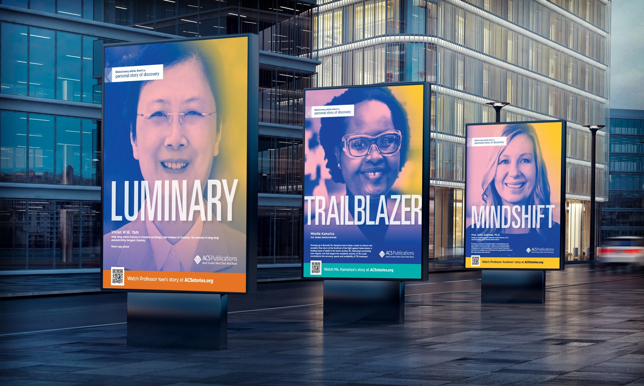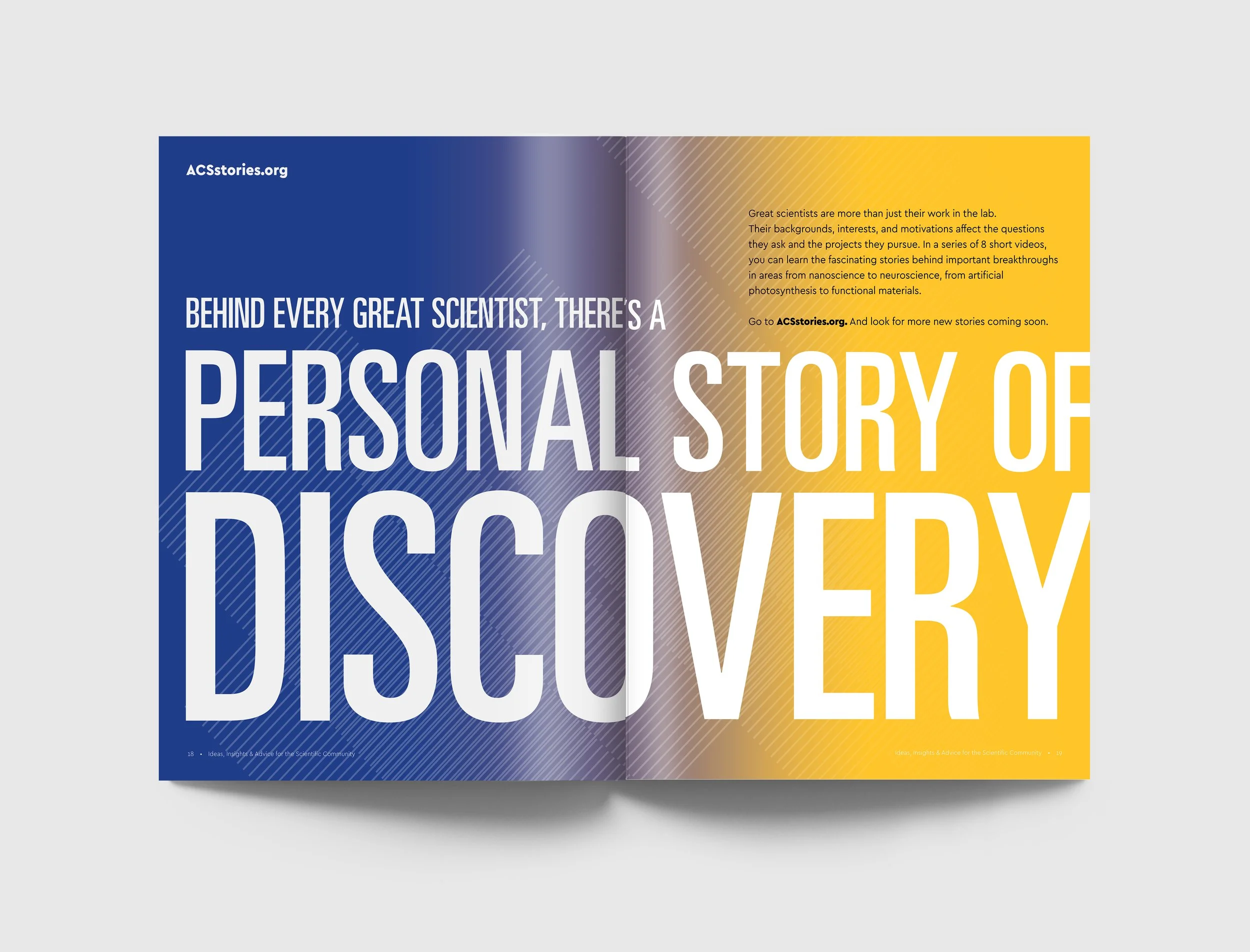 The "Personal Story of Discovery" integrated campaign is a series of 3-minute videos designed to show how ACS Publications shares key values with the global research community it serves. These values include discovery, diversity, mentorship, and the drive to solve important global challenges.